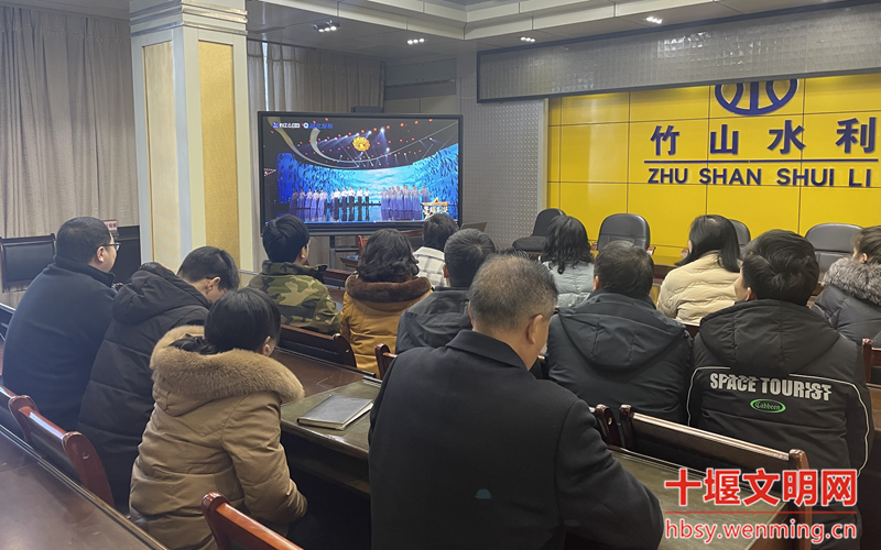 竹山县水利工程移民服务中心组织全体干部集中收看第九届湖北省道德模范致敬礼现场直播。