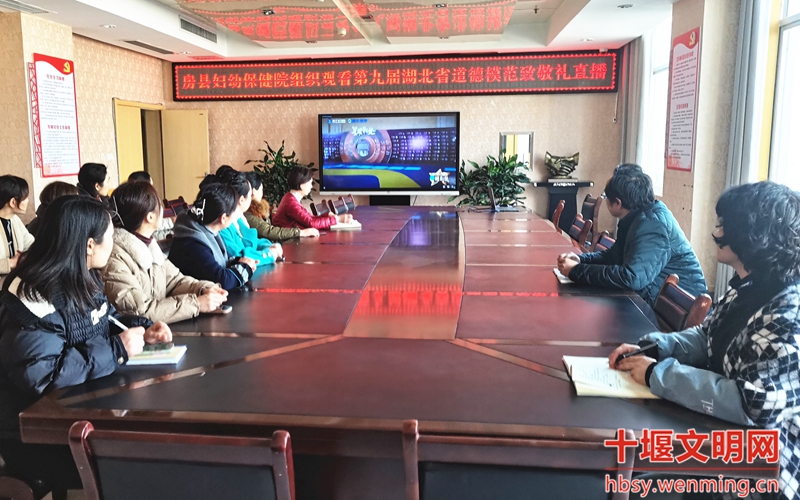 房县妇幼保健院组织职工观看第九届湖北省道德模范致敬礼现场直播,号召大家向榜样学习、致敬。