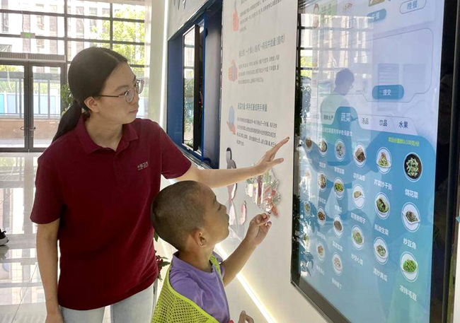 小朋友现场体验全人群营养点餐系统。图片来源:湖北日报客户端