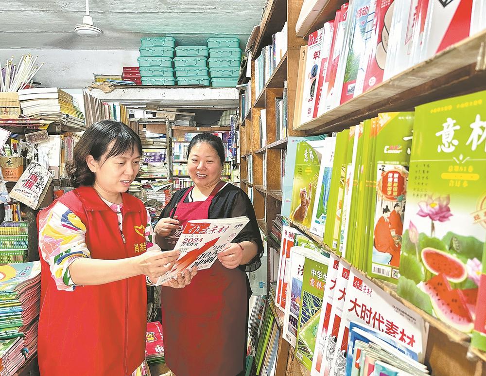 7月16日,樊城肖家台社区志愿者向商户发放“扫黄打非”宣传资料。当天,肖家台社区在辖区开展“扫黄打非假期护苗”宣传活动,全面排查辖区书店,打击政治性有害、盗版出版物以及从境外网站下载非法印刷品、自行非法编印、销售等行为,为青少年创造一个良好的beplay官网app 环境。