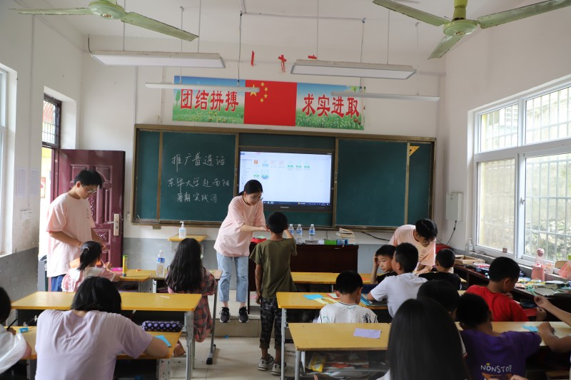 “山区留守儿童比较多,为了让孩子们有人管、有人教,黑虎庙小学暑期没有完全放假。”该校校长张玉滚说:“学校在暑假一直是开放的,周边有二十多个孩子每天都到学校来,我们有值班老师也有大学生支教团队,专门为孩子们设计一些特色课程。”