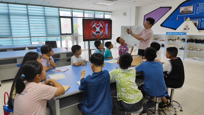 在无人机公益兴趣班,孩子们在市青少年课外活动中心志愿者的指导下,合作组装了第一架无人机,并进行了第一次的正式飞行训练学习。志愿者老师从遥控器手持的正确姿势和对尾飞行姿态方位开始讲起,一步一步带领孩子们走进航空驾驶的无限领域。
