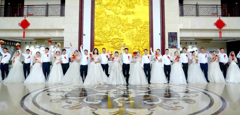 5月19日,驻马店市新蔡县举行第三届集体婚礼,13对新人在亲朋好友和广大群众的见证下,心手相牵迈入婚姻殿堂,开启幸福人生。婚礼现场洋溢着欢乐和温馨的气氛,亲朋好友们和社会各界人士800余人坐在观礼区,为新人们送上祝福。