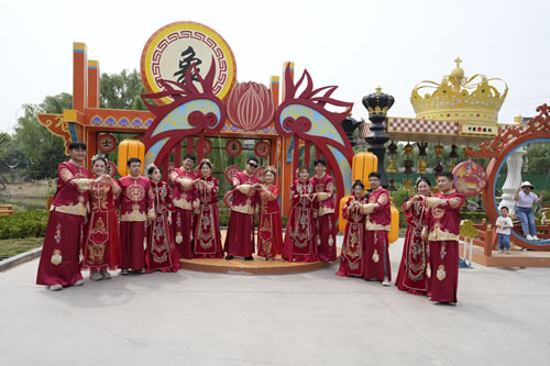 上午9时,雅乐迎宾,来自各行各业的21对新人身着中式婚服,手牵红绸,从中原棋遇记宫殿舞台顶楼门内依次而出,在台阶处进行沃盥洗手,然后缓缓入场。新娘们青春靓丽、气质优雅,新郎们自信潇洒、风度翩翩,大家脸上都洋溢着参加集体婚礼的欣喜欢愉。在大司礼的主持下,新人面向国旗三鞠躬。新郎用“如意秤”将新娘的红盖头挑下,喻义“称心如意永皓首”。新人面向观礼的嘉宾行三鞠躬。随后进行同牢礼、合卺礼、执手盟誓等环节,新人诵读誓词:“知人者智、自知者明、家和事兴……”在亲朋好友和社会各界的见证下,完成了人生中充满仪式感的一刻,缔结了属于他们的金玉良缘。