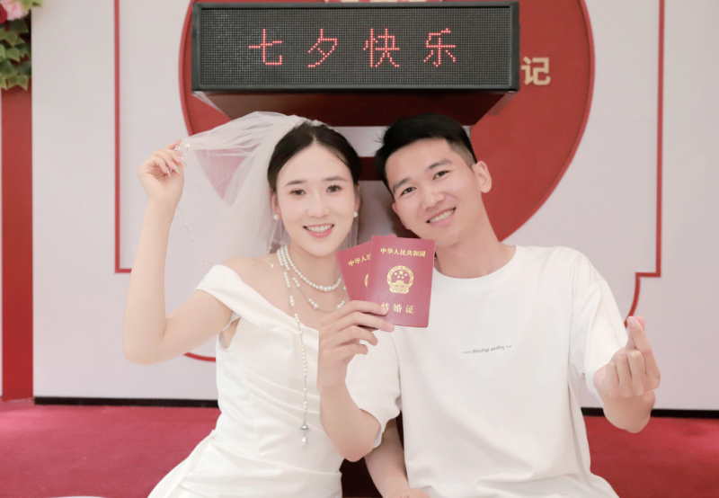 “一大早,我们就来到婚姻登记处,递交材料后,不到十分钟就办好了。”市民杨先生和曹女士领到结婚证后十分激动。“我和爱人商量七夕来领证,爱人很高兴,并找来摄影师,记录下我们最美好的瞬间。”曹女士开心地说。