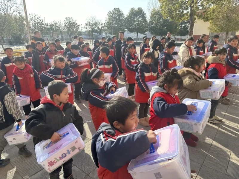 漂亮的帽子、手套、围巾等御寒物品,彩笔、口琴、跳绳等文体用品……1月23日,市城乡一体化示范区妇联、教育中心及枣林街道社工站和志愿者带着“爱心大礼包”——“HELLO小孩”公益项目爱心套餐走进樊营中心小学,为孩子们送去冬日里的温暖与关爱。
