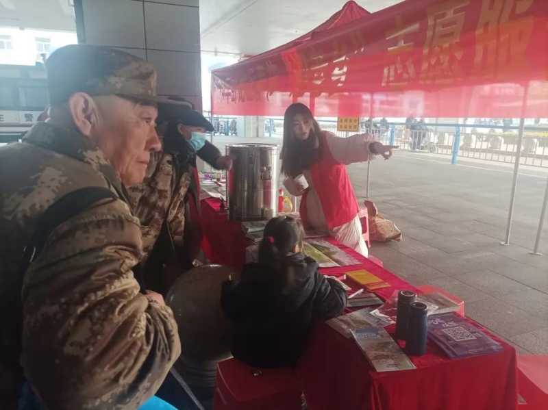 卧龙区委宣传部牵头组织区文广旅局、区卫健委、区发改委、区商务局等单位志愿者在南阳火车站设置志愿服务站点,为旅客们提供安全饮水、问询指导、行李搬运、发放彩页宣传卧龙beplay官网app 等志愿服务活动,以暖心的微笑温暖旅客的心,以热情的服务彰显青志愿者的责任与担当,以实际行动诠释“奉献、友爱、互助、进步”志愿服务精神,为广大乘客营造温馨、舒适、安全、便捷的出行和返乡环境,感受到家乡日新月异的发展变化。