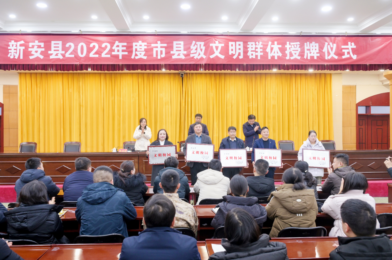 为进一步贯彻落实全国宣传思想工作会议精神,表彰精神文明建设先进单位,激励各单位进一步弘扬社会新风正气,提升精神文明建设水平,12月20日下午,新安县举行2022年度市县级文明群体授牌仪式。县委副书记王晓辉,县委常委、宣传部长、副县长赵宏峰,县委宣传部副部长、精神文明建设促进中心主任张莉莉出席仪式。市、县级文明群体及个人代表共200余人参加仪式。