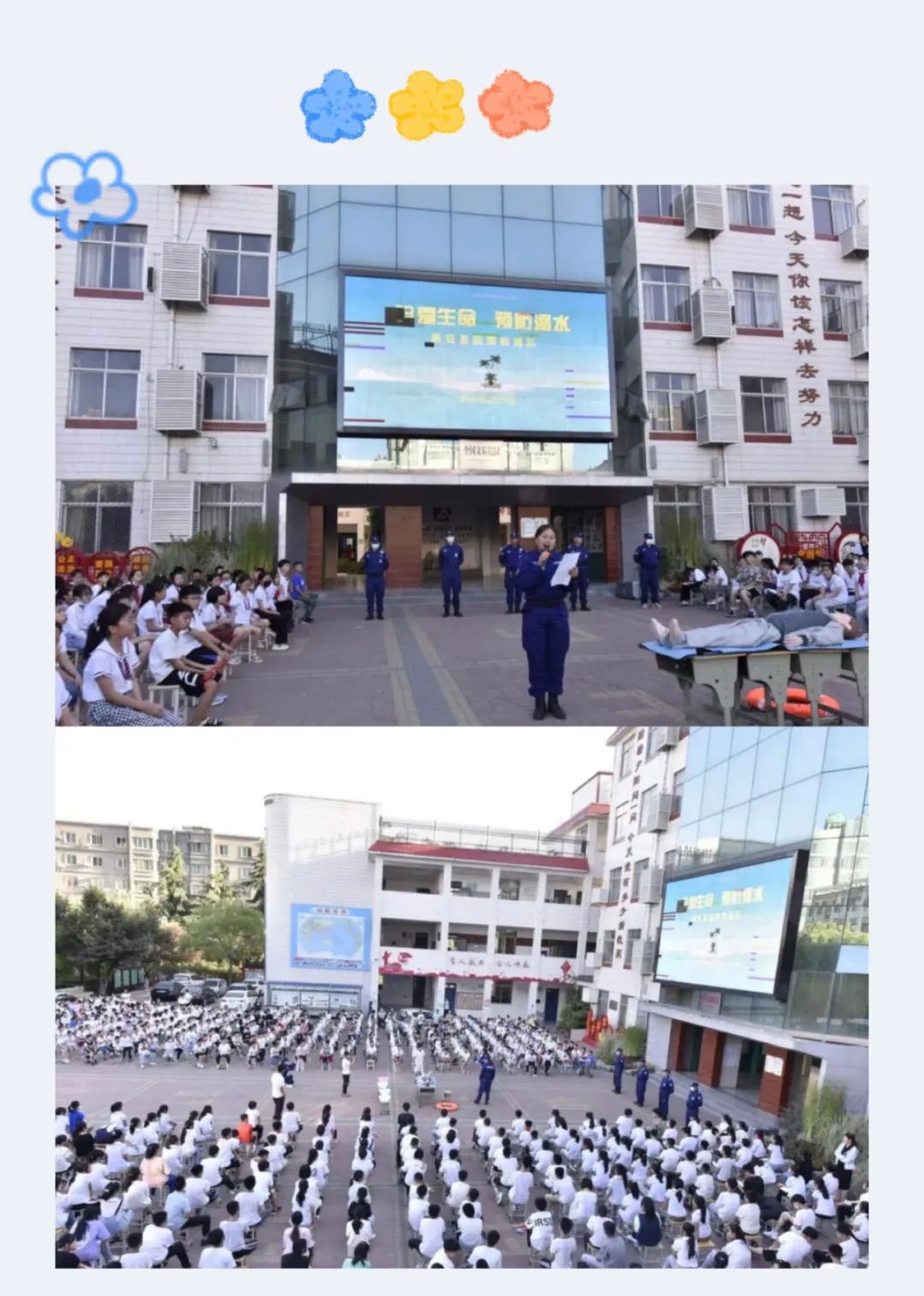 6月13日下午,新城实验学校邀请新安县蓝鹰救援队对全体师生开展了“防溺水”安全知识教育专题讲座,进一步增强学生的安全意识,提高学生的自护自救能力。