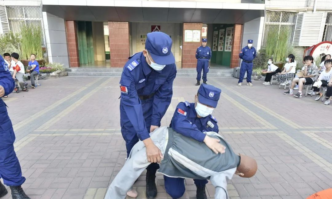 溺亡救援的黄金时间仅有4分钟,为使学生们更直观地掌握急救知识,“蓝鹰救援队”的队员带着救援工具,还原救援现场,展示了几种科学有效的救援方法。同时还利用人体模型,向学生讲解了如何进行心肺复苏等急救方法。
