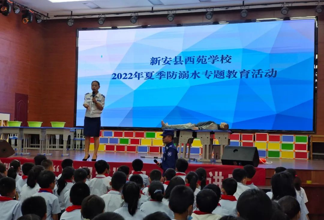 6月14日下午,新安县西苑学校邀请“蓝鹰救援队”为全校师生进行了一次防溺水安全教育专题讲座。