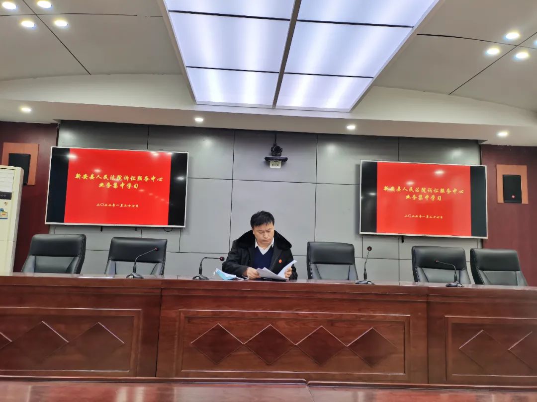日前,为进一步提高工作人员业务水平与综合技能,优化服务质效,新安法院诉讼服务中心组织开展业务集中学习。党组成员、副院长张联领学相关内容并讲话,部门全体干警和司法辅助人员参加学习。