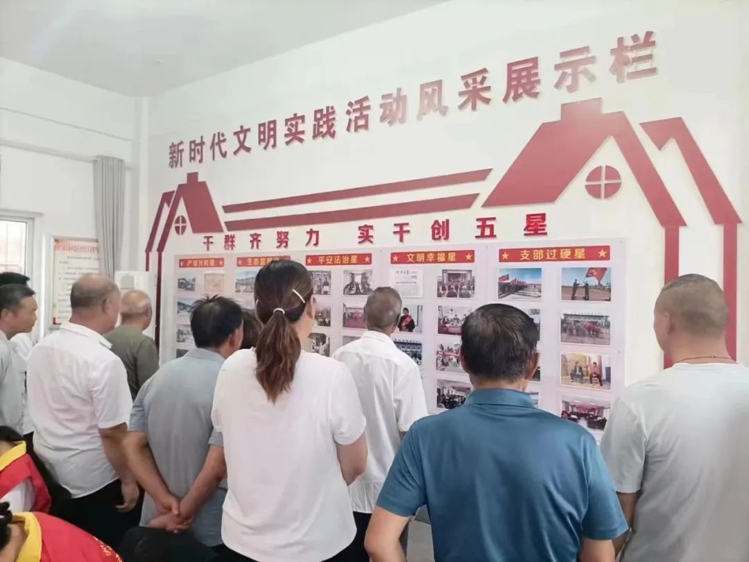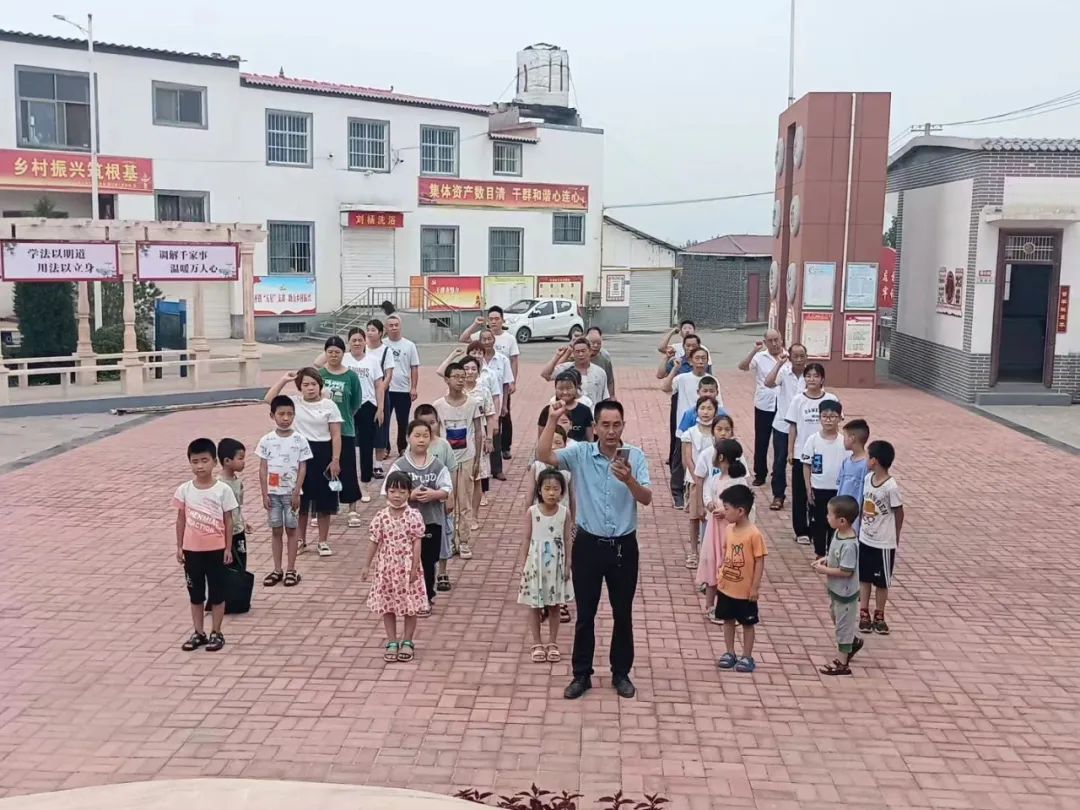 上午,在刘杨村支书陈军委的带领下,全体党员、大学生志愿者以及暑期托管中小学生,在村新时代文明实践广场一起升国旗唱国歌,重温入党誓词,学习参观创建“五星”支部工作展示。