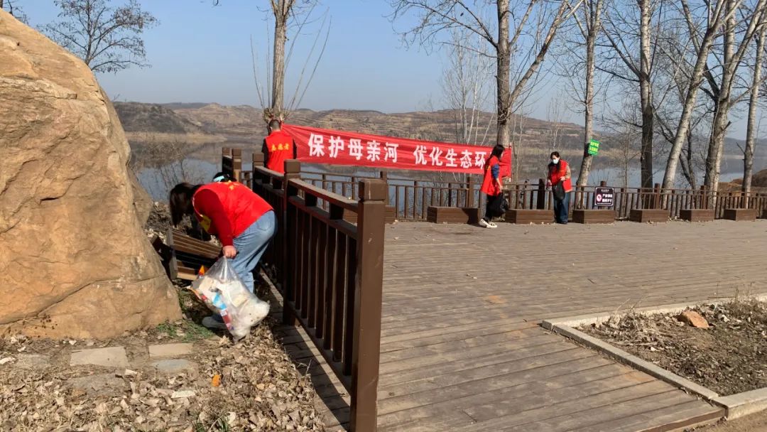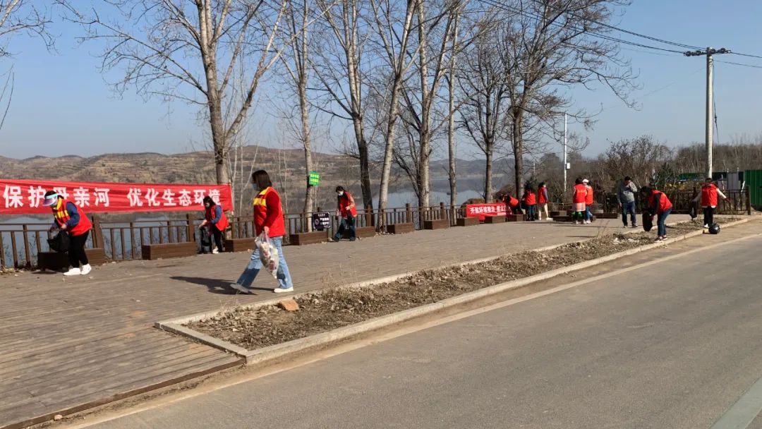 3月9日是“保护母亲河日”,洛阳市生态环境局新安分局二十余名志愿者身着红色马甲,手拿夹子和环保袋,到小浪底库区新安县境内河道两岸开展保护母亲河志愿服务活动。