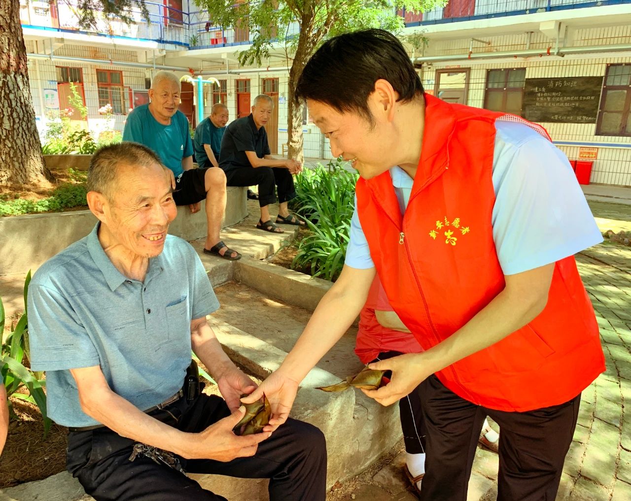 全体参与人员向老年人问好,送上诚挚的节日祝福,并与老年人亲切交谈,了解他们日常生活状况及身体健康情况。之后为老年人送上热粽子、牛奶、面包、象棋、洗衣液等。