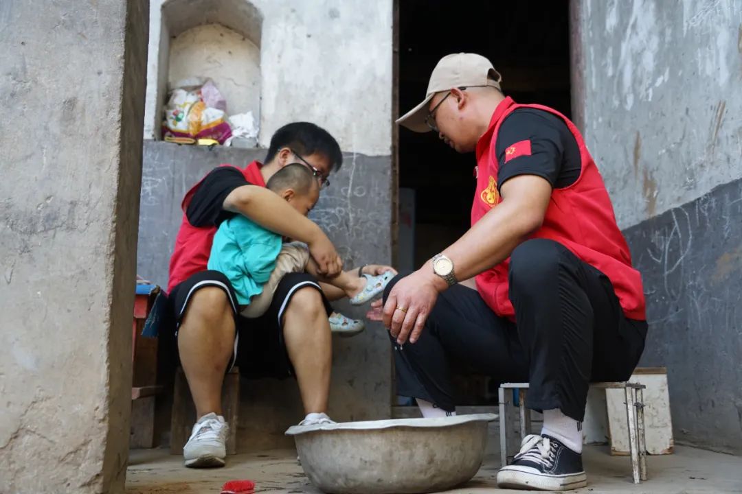 在安桥村尚重庆老人家中,陈莲英奶奶因患偏瘫,生活不能自理,志愿者们争着给奶奶洗头,温柔洗脸擦手,使老人感受到了亲人般的温馨和幸福。