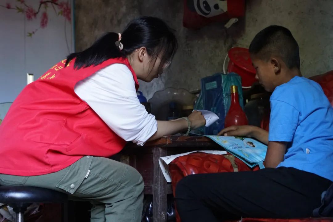 随后,我们在负责人带领下到达一户留守儿童的家中,通过交流与沟通,我们与孩子们渐渐地熟悉起来,孩子们也在我们真诚努力之下敞开了心扉,分享自己的学校生活与学习情况。之后,我还陪着孩子们开心玩耍,为他们讲故事。看到他们绽放的微笑,我内心感到无比的温暖。