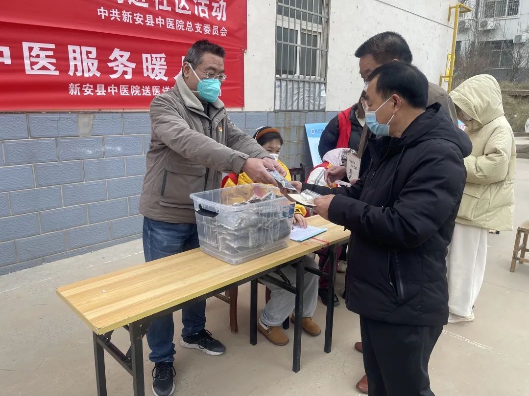 此外,为扩大送医、送药惠及范围,新安县中医院还组织医疗力量组成义诊团队,在县体育场开展了免费义诊活动,为过往群众提供周到的医疗服务,不仅有免费测血糖、测血压等身体检查服务,还结合中医院“治未病”理念,运用中医特色诊疗法向过往群众重点讲解防疫抗疫和冬季常见病的预防、用药和饮食方面的注意事项,解答群众的疑问,帮助群众了解这些疾病的危害及防治知识,让每一位前来就诊的群众享受到“家门口”的优质医疗服务。