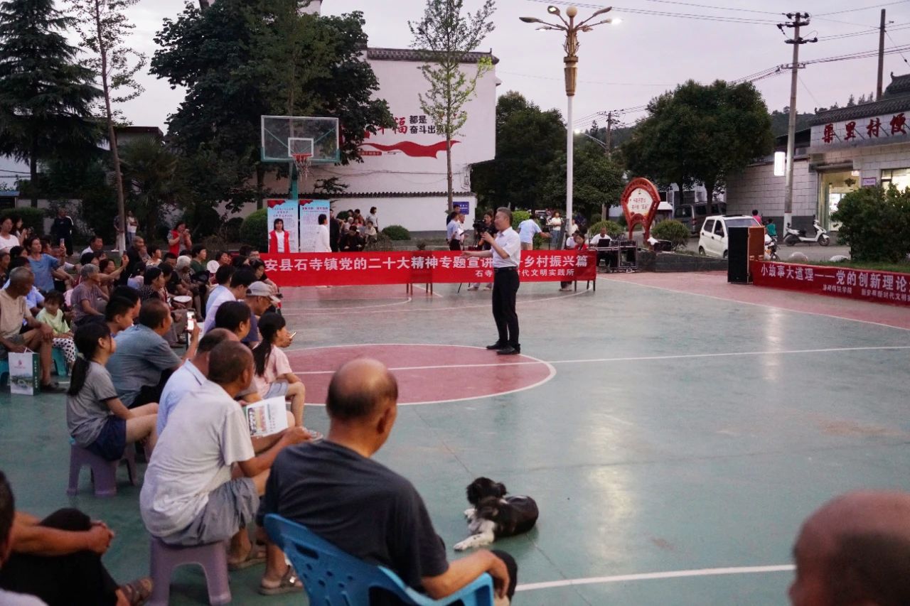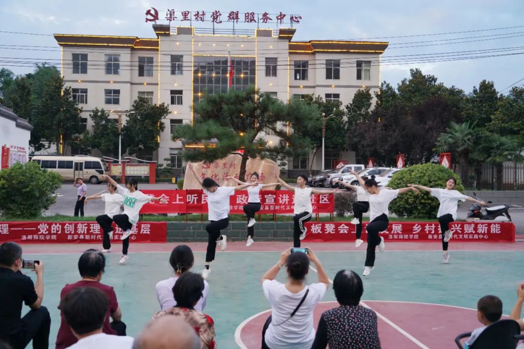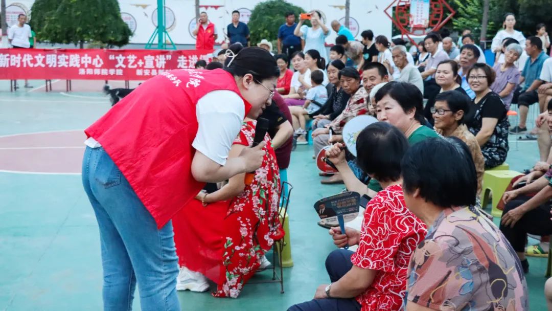 7月5日晚8时左右,新安县石寺镇渠里村新时代文明实践广场上不时传出热烈的掌声与欢笑声。洛阳师范学院结对新安县新时代文明实践中心,采用“文艺+宣讲”的形式,面向基层群众开展党的二十大精神宣讲正在火热进行。