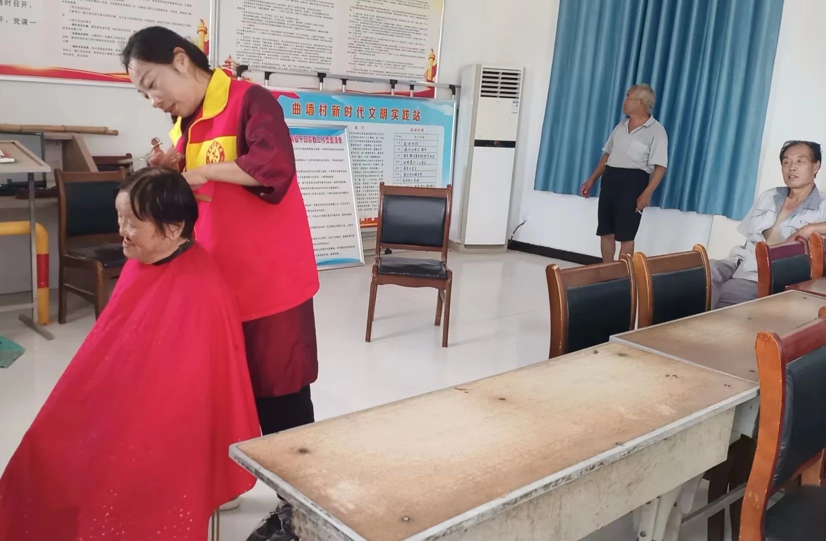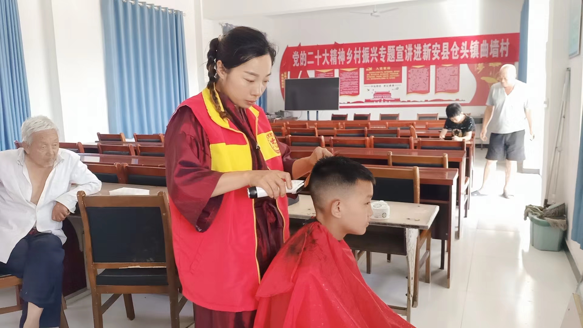 7月18日上午,仓头镇郭庄村、张村村、曲墙村、新仓村分别开展了“爱心义剪日”活动。炎炎夏日来临,气温逐渐升高,志愿者们早早来到各村,为老人和孩子们免费理发。大家一边理发一边聊家常,和志愿者们讲述着日常生活的点滴,场面温馨而和谐,炎热的夏天里这一片欢声笑语让人顿感清凉。随着“爱心义剪日”的常态化开展,仓头镇各村实践站志愿者纷纷加入了这项活动中,围绕“文明幸福星”创建,从群众需求出发,不断丰富服务内容,着力增加群众的幸福感、满意度。
