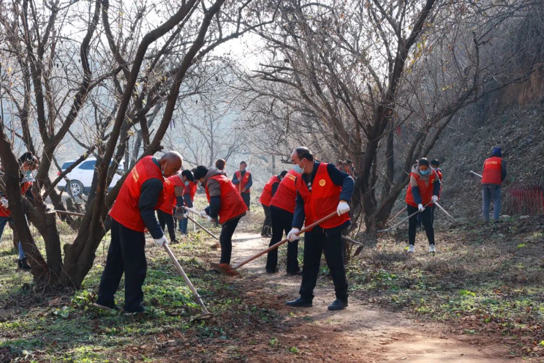 寒冷的天气阻挡不住志愿者们的热情,活动现场,大家手持各种清洁工具,穿梭在樱桃沟的各个角落,相互配合、齐心协力,对荒草、枯枝、杂物等进行彻底清理,进行果树病虫害防治、树木修剪等,净化樱桃古树生长环境。以实际行动践行生态文明理念,擦亮文明底色,让志愿之花在千年樱桃沟绽放。
