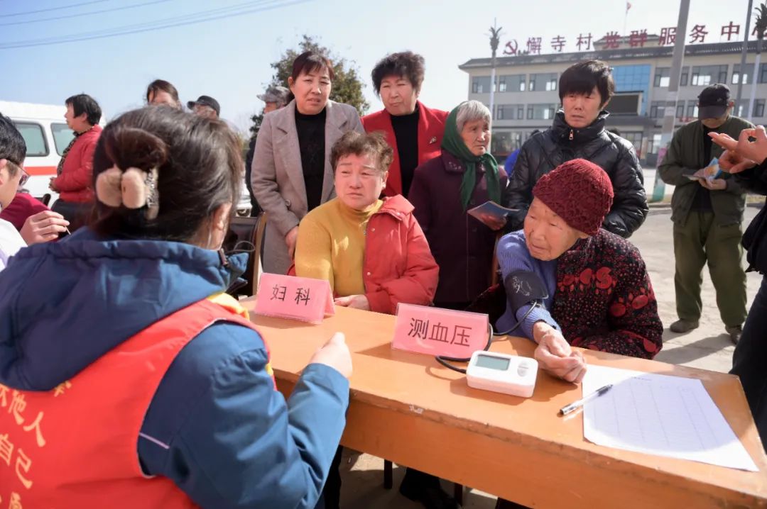 在主会场南李村镇懈寺村义诊现场,镇卫生院的医护人员为前来就诊的居民测血糖、量血压、问诊把脉、针灸,了解群众们的身体状况,给出合理的健康生活建议。对于血压偏高的居民,医生现场给予饮食、用药建议;对于有颈椎病和骨质疏松症的居民,讲解日常治疗和补钙的方法;对于居民咨询的问题,医生们耐心细致地解答;对于行动不便的老人,医生还进行上门问诊。活动中还发放了糖尿病预防、脑卒中预防等健康宣传手册,对健康保健等常识进行宣传。