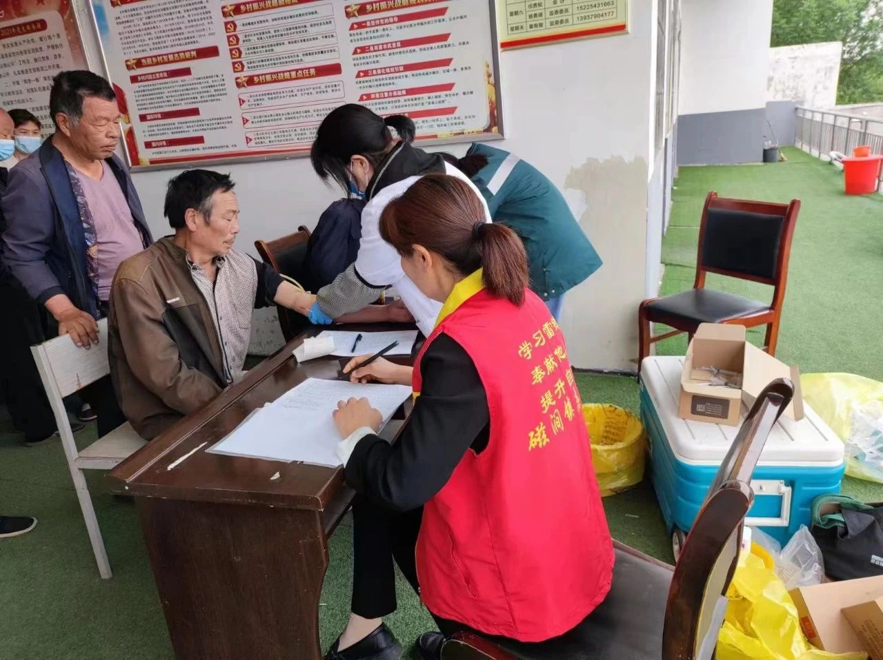 3月6日,五头镇马头村组织村医、村级志愿服务队成员,共同开展针对村内患病家庭、高龄老人的健康体检、健康知识宣传、用药指导、心理疏导等文明实践活动。