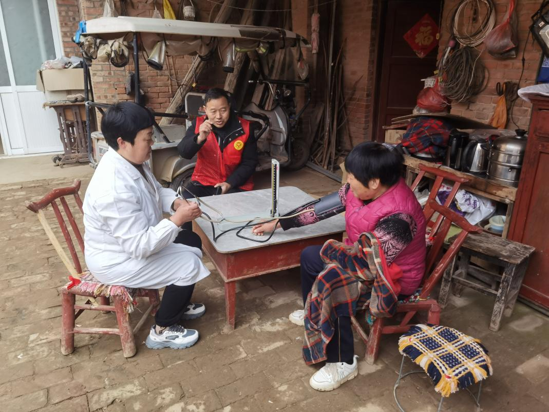 一行人深入村庄各个患病家庭、老龄老人户,为基层群众提供便捷、优质的医疗服务。每到一户,由村医为群众测量血压、讲解健康知识,并对群众的用药情况进行正确指导,同行志愿服务人员对群众开展心理疏导、心理安慰,让群众能够身心健康。