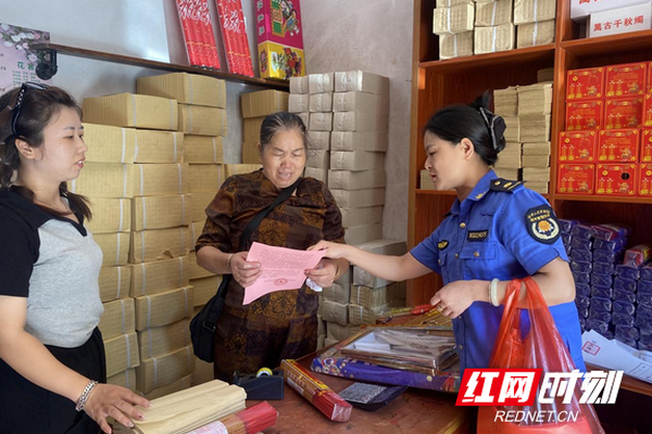 中元节临近,为巩固文明城市创建成果,树立文明祭祀新风,促进移风易俗,营造安全、文明、和谐的祭扫氛围,8月9日,由湖南省衡山县城市管理和综合执法局、县市场监督局、县应急管理局、县公安局的执法人员组成的衡山县禁炮殡改联合执法大队对城区市场、商铺、小超市和流动商贩售卖祭祀用品情况进行专项突击检查,对违规贩卖烟花爆竹的商户进行依法查处。