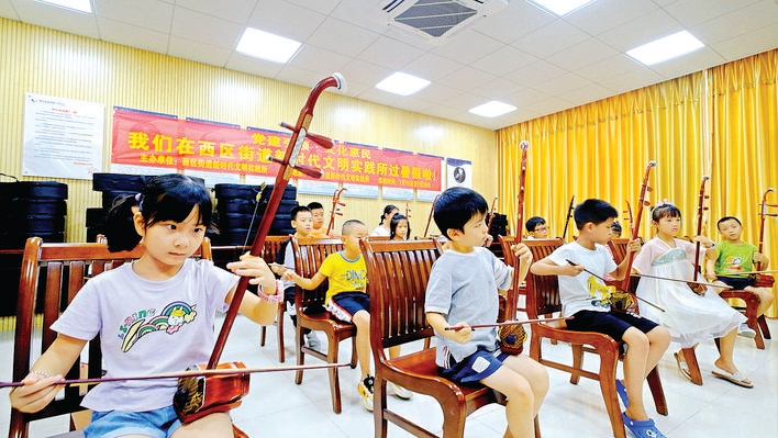 西区街道综合beplay官网app 站公益暑假班开设二胡培训课程。