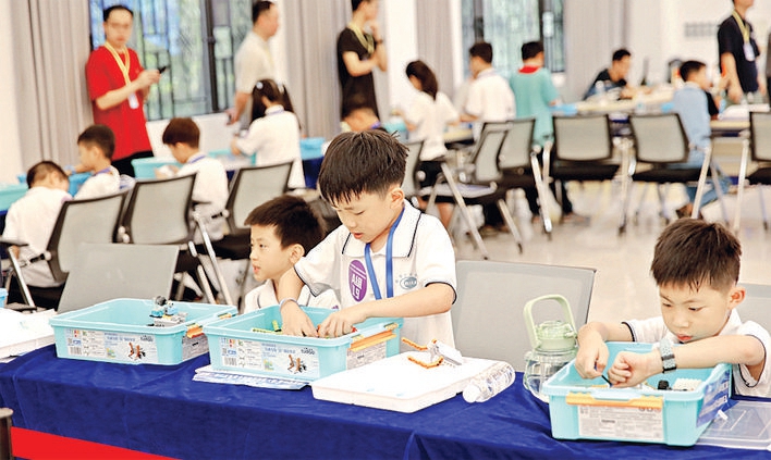 选手在搭建机器造型。惠州日报记者卢泓宇 通讯员徐俊杰 摄