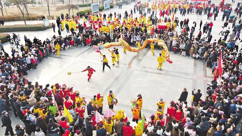 2月14日,河北省宁晋县民间艺人在民乐园广场舞起祥龙庆新春。 河北日报记者 赵永辉摄