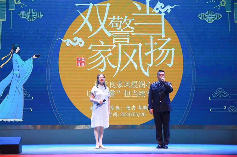 全国“最美家庭”代表——杨冉和胡晓东夫妻二人都是高速公路战线的一线民警。在现场,他们分享了如何让优良家风浸润心田,以“双警”担当续写忠诚的当代“家国情怀”。杨冉的父亲是一名军人。从小,父亲就给她讲述浴血奋战、保家卫国的英勇事迹。“在长辈的一次次谆谆教诲中,我们在潜移默化的行为示范下成长起来,最终都选择了这身藏青蓝。”胡晓东和杨冉坚定地说。