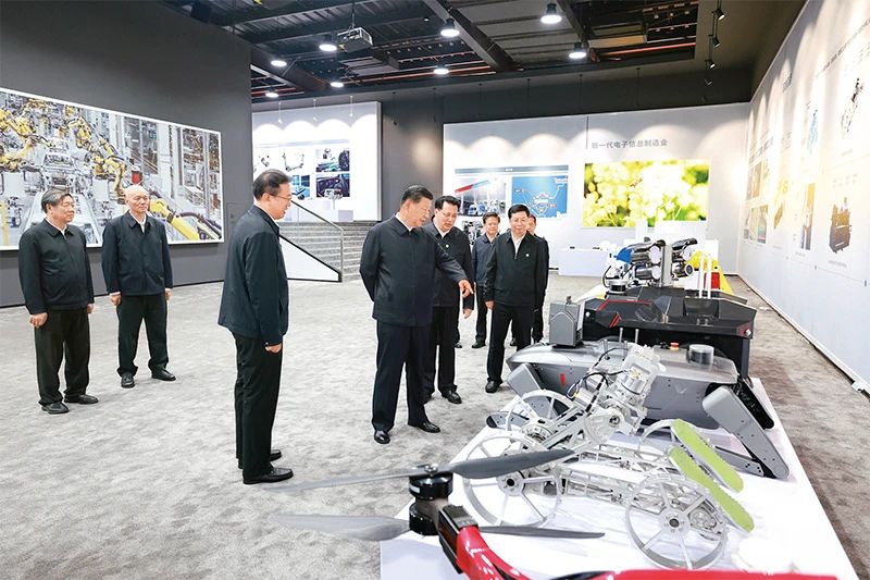 2023年10月10日至13日,中共中央总书记、国家主席、中央军委主席习近平在江西考察。这是11日上午,习近平在景德镇市昌河飞机工业(集团)有限公司考察。 新华社记者 燕雁/摄