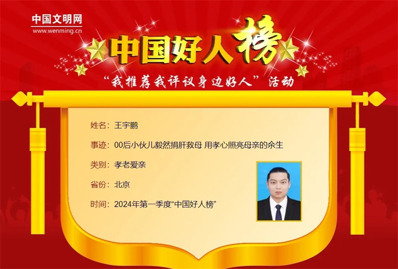王宇鹏入选“中国好人榜”