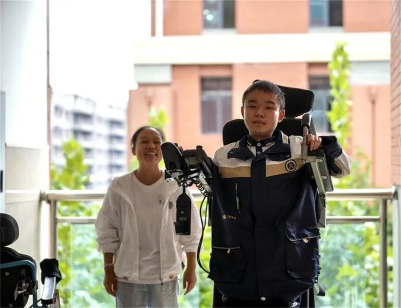 在快要失去行走能力时,罗睿燊担心地问过:“妈妈,我的腿越来越没力了,我是不是要瘫痪了呀?”周朝喜笑着对儿子说,“不要害怕,妈妈会一直陪着你,做你的双腿,带你去任何你想去的地方!”