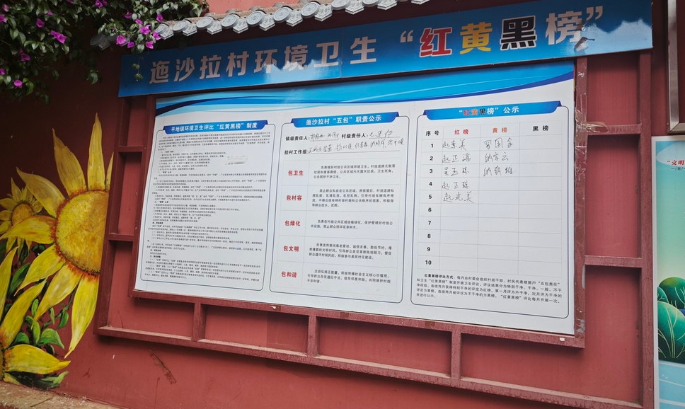 迤沙拉村“红黄黑榜”。卢瑶 摄