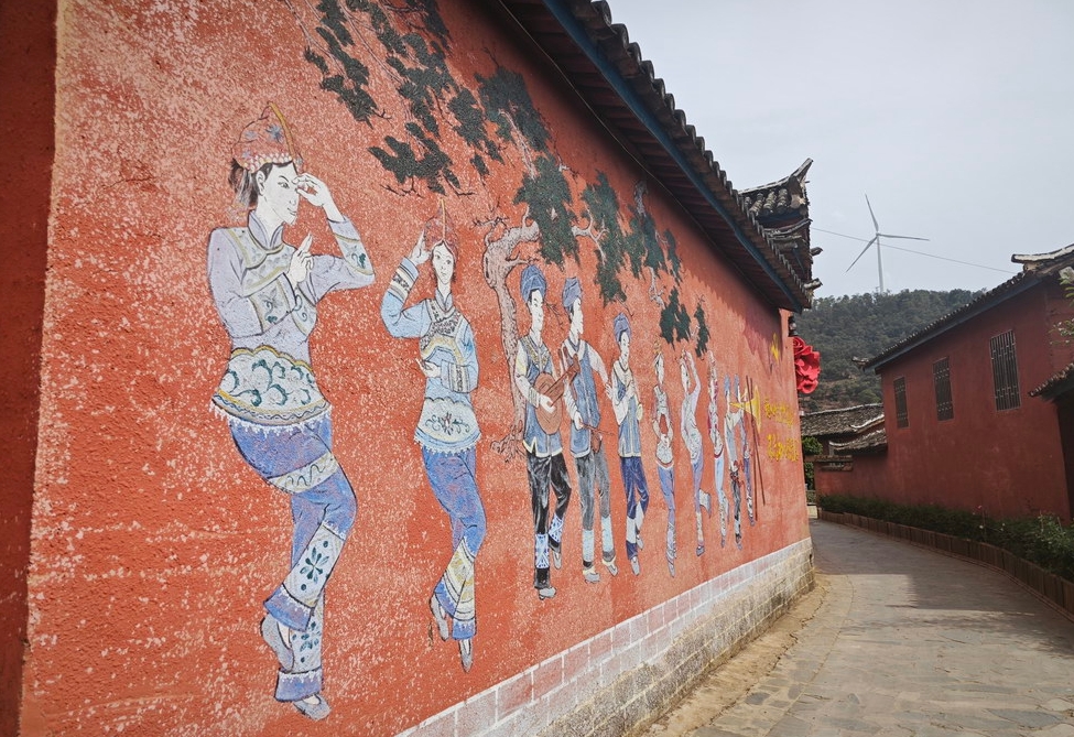 迤沙拉村红墙彩绘。卢瑶 摄