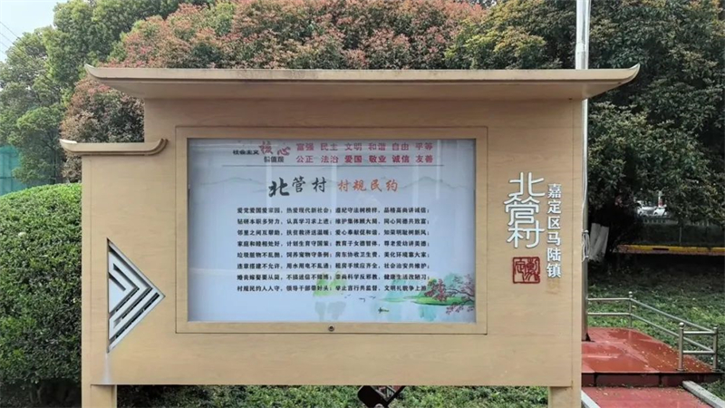 马陆镇北管村因地制宜,不仅将《新建房屋租赁托管办法》及《新建小区日常管理办法》写入村规民约,更将村规民约延伸至“村规店约”“村规企约”。同时,结合村情民意,将“三约”的履行与村级福利挂钩,村“两委”干部和党员带头签约履约,进一步提升村规民约的约束力。“婚丧嫁娶要从简,不搞迷信不赌博……”如今,改编成“七字经”版本的村规民约已成了村民们的行为“新标尺”。
