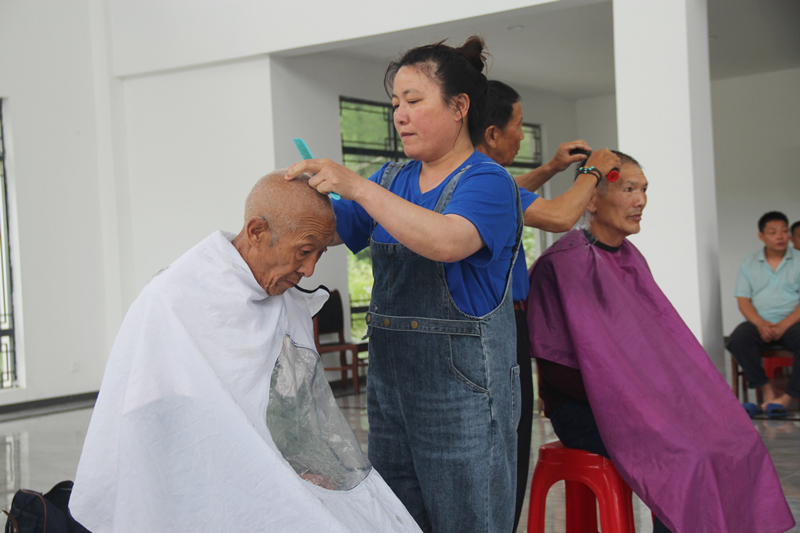 “下这么大的雨,你们还来给我们送东西,太谢谢了!”宣城市望故乡安置点的村民方桂兰对于志愿者“大包小包”的爱心十分感动,现场化身文明实践“新力量”,帮助大家一起组织、搬运、分发。现场温暖满溢。在华云楼安置点,还有一支理发师队伍在忙着为群众服务。“安置点老人比较多,我们特别安排了理发师志愿者一同前往,为老人们理理发。”宣城市公民道德建设促进会会长赵燕霞说道。