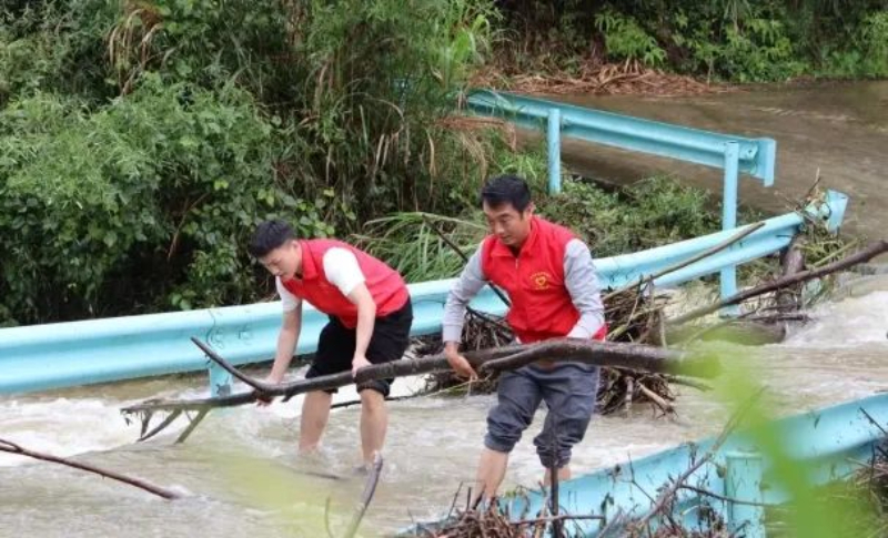 宜春市靖安县高湖镇山口村志愿者协助清理道路。