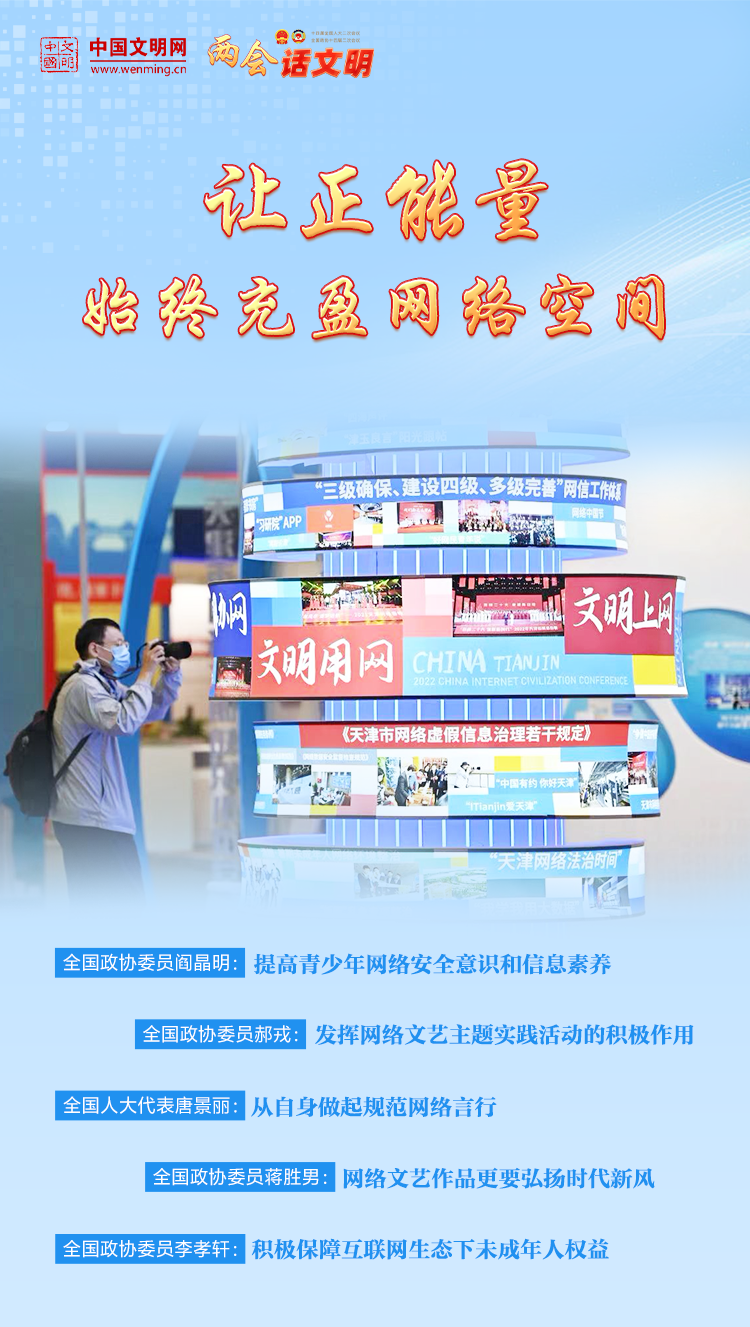 习近平总书记强调,要加强网络空间治理,加强网络内容建设,做强网上正面宣传,培育积极健康、向上向善的网络beplay官网app 。在今年全国两会上,代表委员就如何加强网络文明建设,让正能量始终充盈网络空间展开热议。