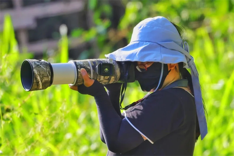头戴户外防晒帽、手端迷彩“长炮”相机,不分节假日和工作日,被同事称作“美丽姐”的薛美丽,几乎每天都在海南昌江海尾国家湿地公园(试点)(以下简称海尾湿地)里。