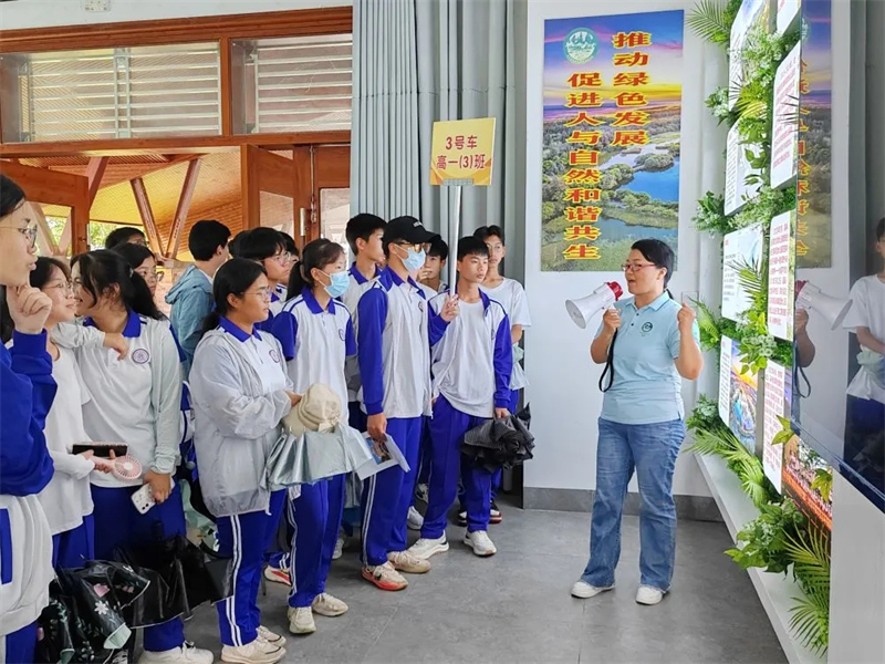 图为薛美丽为学生科普动植物和湿地保护知识。新华社发