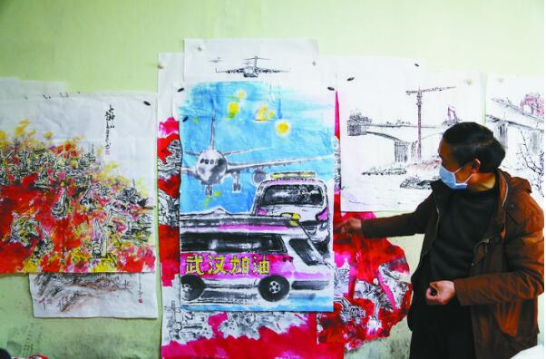 走进农民画画家陈良成的工作室,桌案上摆放着几幅作品,有奋战在一线的医护人员、有为武汉捐赠物资的企业,还有默默无闻的志愿者,呈现了齐心协力抗击疫情的一个个感人瞬间。陈良成说:“在这场没有硝烟的战‘疫’中,全国人民有钱的出钱,有力的出力。自己画了这么多年的农民画,也应该尽一点微薄之力。全民居家隔离的日子,因为纸墨笔砚储备不多,我就在草稿纸上画下构思,一共画了8幅作品。”他告诉记者,通过全民的努力,已经看到了胜利的曙光,如今邳州逆行的白衣天使也已平安归家,他准备以这一场景进行创作,向他们致敬。