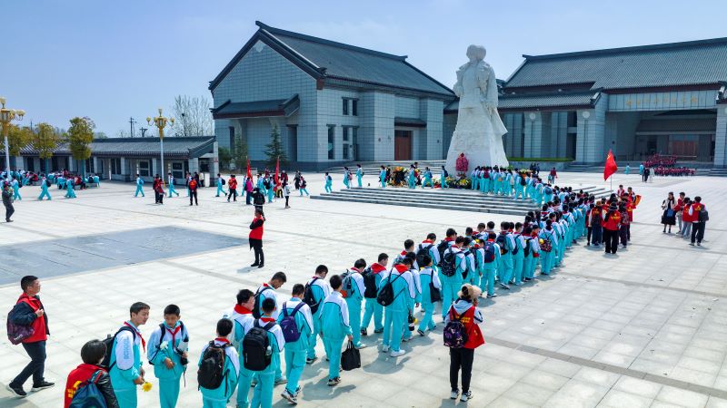 “我们是共产主义接班人,继承革命先辈的光荣传统……”清明节前夕,位于驻马店市驿城区的杨靖宇将军纪念馆前,一群少先队员正在献唱《我们是共产主义接班人》,致敬英雄杨靖宇,嘹亮的歌声吸引了前来参观的游客驻足聆听。