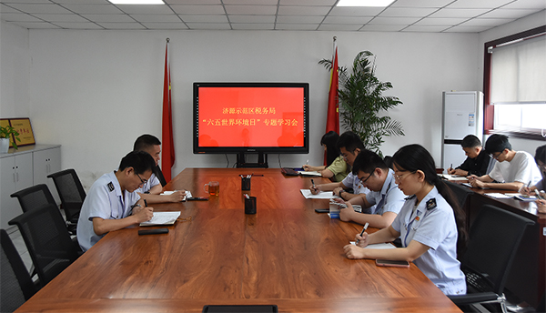 组织税务干部在会议室共同学习习近平总书记关于生态环境保护的相关论述,了解世界环境日的来源与发展以及2023年世界环境日的主题,并开展生态环境方面的“以案为鉴”,教育税务干部保护自然、爱护自然。
