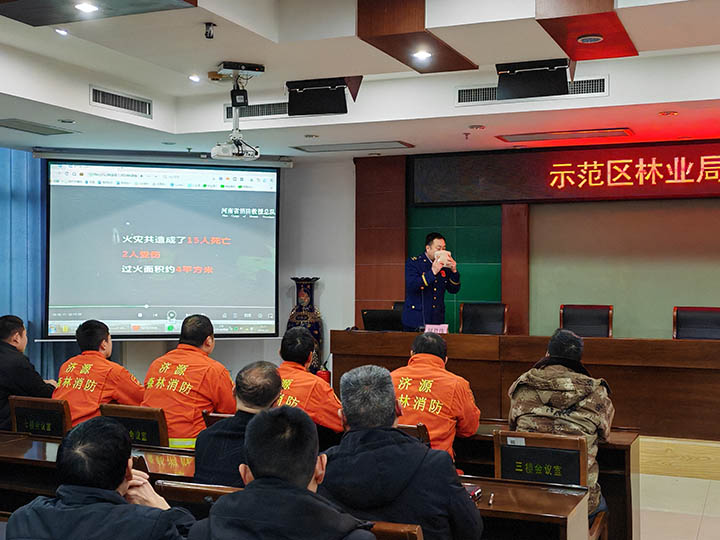 为有效预防火灾事故发生,增强干部职工消防安全意识和避险自救能力,2月2日,济源林业局组织开展了消防安全培训,特别邀请到济源消防救援支队玉川大队防火参谋周毅伟前来授课,林业局机关办公人员、局属各单位负责人和安全员等共60余人参加了培训。