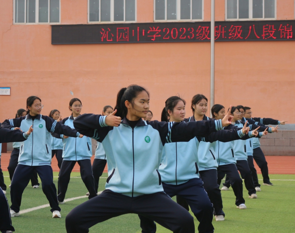 11月22日,在沁园中学千人“八段锦”展演的田径场上,气氛热烈,音乐悠扬。2023级1400余名师生一个个身着统一服装,以饱满的热情和昂扬的斗志在中华传统体育项目八段锦表演中,尽情的舞动青春之姿,绽放青春华彩。