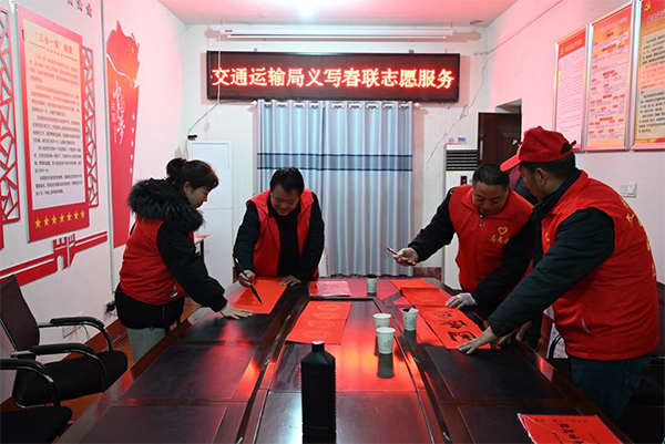 活动现场,来自交通系统的多位书法爱好者化身文艺志愿者倾情挥墨,写春联、送福字,把饱含祝福的笔墨佳作,化作一张张寓意吉祥的书画作品,送到群众手上,为冬日增添了一抹暖色。